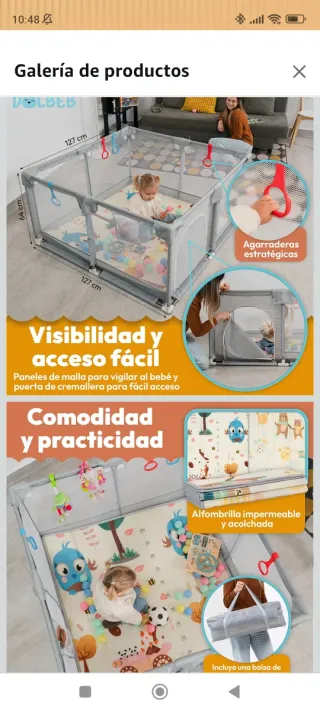 Parque de juegos para bebés, ideal para que jueguen de forma segura. Incluye alfombrilla. - Paneles de malla para vigilar al bebé. - Puerta con cremallera para fácil acceso. - Agarraderas estratégicas. - Alfombrilla impermeable y acolchada. - Incluye bolsa de transporte.