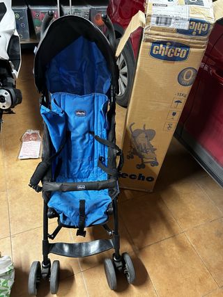 Cochecito de paseo de la marca Chicco en color azul. - Estructura ligera y plegable. - Asiento acolchado. - Capota. - Arnés de seguridad.