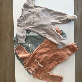 Conjunto de tres pijamas psra bebe Usados solo 1 veZ Marron y verde 1 mes Gris 0