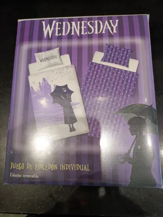 Funda nórdica individual con diseño reversible de Wednesday Addams. Ideal para cama de 90. - Diseño reversible. - Personaje: Wednesday Addams. - Tamaño individual.