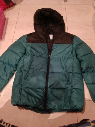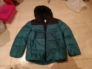 Chaqueta acolchada con capucha, ideal para el frío. - Color verde y negro. - Cierre de cremallera. - Talla 9-10 años. Chándal tono azulado talla 12 años ( pero talla pequeño) Pantalón vaquero marca zara y camiseta Nukutavake talla 10 años Regalo pantalón de pijama 9/10 años
