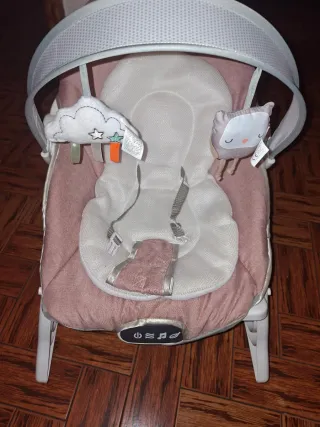 Hamaca para bebé de la marca Chicco en color gris. - varias posiciones - también se hace balancín _ con un arco de juegos con peluches - colchoneta. - Diseño acolchado para mayor comodidad. - Marca: Chicco.
