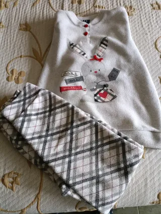 Conjunto de pijama para niña con un divertido diseño de conejito. - Talla 8. - Tejido suave y cálido. - Estampado de cuadros en pantalón y detalles del pijama. - Cierre con botones en la parte superior.