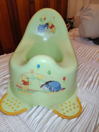 Sin uso. Orinal de plástico con diseño de Winnie the Pooh y sus amigos. - Color verde claro. - Ilustraciones de Winnie the Pooh y Igor. - Base antideslizante.