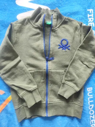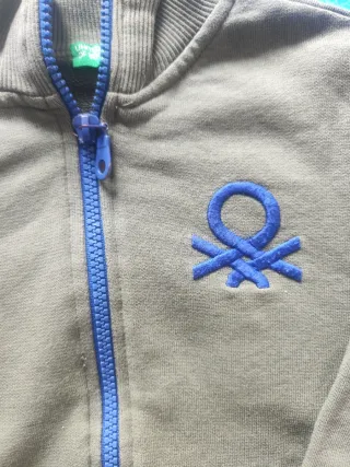 Chaqueta de punto Benetton en color verde. Ideal para el día a día. Talla 5-6 años - Cierre completo con cremallera. - Logo de Benetton bordado en azul en el pecho. - Cuello alto. - Puños y bajo de canalé.