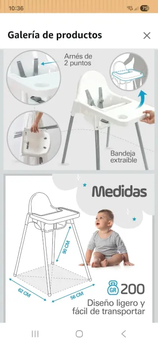 Trona de bebé en buen estado, lista para su nuevo hogar. Es cómoda y fácil de limpiar. - Diseño moderno y funcional. - Bandeja extraíble. - Arnés de seguridad de 5 puntos.