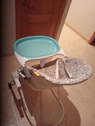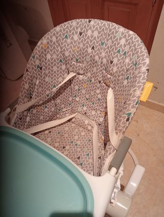 Trona para bebé con un diseño moderno y funcional. Perfecta para las comidas. - Bandeja superior desmontable. - Asiento acolchado. - Arnés de seguridad.