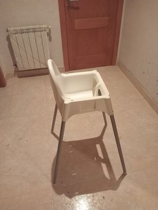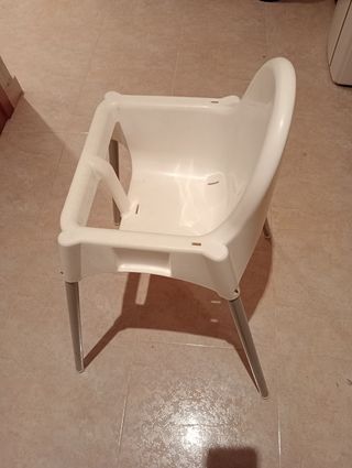 Trona de plástico blanca, ideal para que los más pequeños coman. - Estructura de plástico resistente. - Patas metálicas plateadas.