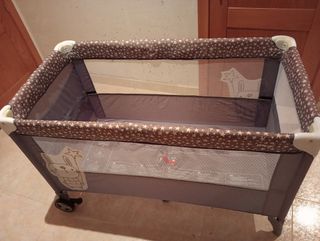 Cuna de viaje de la marca Cunita by Nurse. Es plegable y fácil de transportar. - Color beige. - Incluye bolsa de transporte.