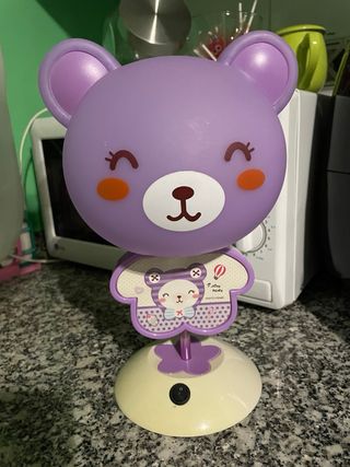 Adorable lámpara con forma de oso, ideal para la habitación de los más pequeños. Su luz suave crea un ambiente acogedor. - Diseño de oso con detalles de corazón y globos. - Base redonda con interruptor. - Colores pastel.
