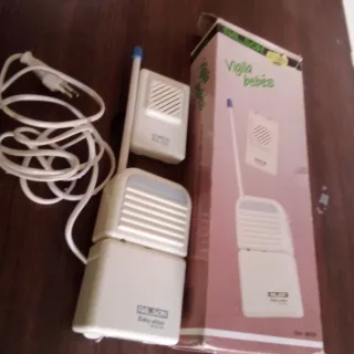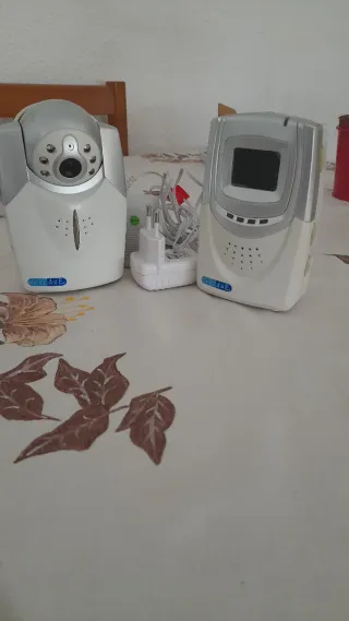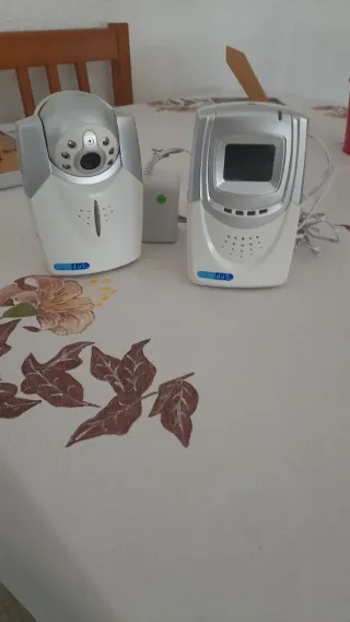 Sistema de vigilancia para bebés de la marca Chicco, compuesto por una unidad de cámara y una unidad de monitor. - Unidad de cámara con visión nocturna. - Unidad de monitor con pantalla. - Incluye adaptadores de corriente. Ya tiene 8 años, la batería del monitor dura poco pero funciona perfectamente