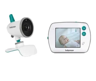 Vigilabebés de la marca Babymoov, modelo YOO Feel. Incluye cámara y unidad parental. - Pantalla de 9 cm (3,5 pulgadas). - Tecnología VOX (activación por voz). - Alcance de 250 metros.