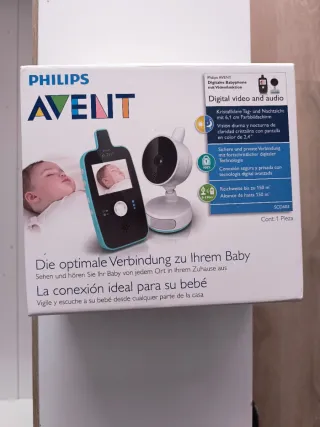 Vigilabebés digital con vídeo de Philips Avent. Incluye unidad para padres y unidad para bebé. - Tecnología FHSS adaptativa. - Visión nocturna. - Comunicación bidireccional. Con la caja original y manuales