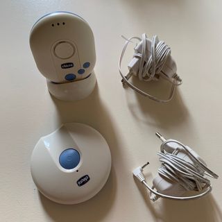 Vigilabebés clásico de audio de la marca Chicco. Incluye dos unidades. - Alcance de hasta 150 metros. - Activación por voz. - Se puede utilizar Baterías recargable Atencion,es un emisor y usa canales de radiodifusión. Cerca de teléfonos o wifi puede sonar interferencias