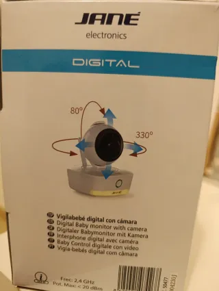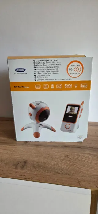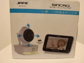 Cámara vigila bebés de la marca Jane, modelo Sincro. En su caja original y con libro de instrucciones. - Pantalla de 4.3 pulgadas. - Diseño moderno y compacto. - Monitor digital con cámara. - Control de temperatura ambiente. - Zoom. Giro 360°. - Audio bidireccional. - Visión nocturna. - Detector de sonidos.