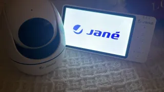 Cámara de vigilancia para bebés de la marca Jane. Permite supervisar al bebé de forma remota. - Diseño moderno y compacto. - Fácil de instalar y usar.
