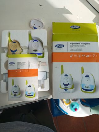 Vendo vigilabebés de la marca Jané, modelo Sincro Bit. Es un intercomunicador de audio clásico, robusto y muy fácil de usar. ✅ Características: • Gran Alcance: Hasta 200 metros en espacio abierto (perfecto para casas de varias plantas o jardín). • Activación por Voz: El receptor se queda en silencio y solo se activa si el bebé llora o hace ruido (ahorra batería y quita el molesto ruido blanco de fondo). • Luz de Compañía: El emisor tiene una luz suave para la habitación del bebé. • Sistema Anti-interferencias: 2 canales conmutables para que se escuche nítido. 🔋 Estado: Funciona perfectamente. Incluye su caja original y los dos adapt