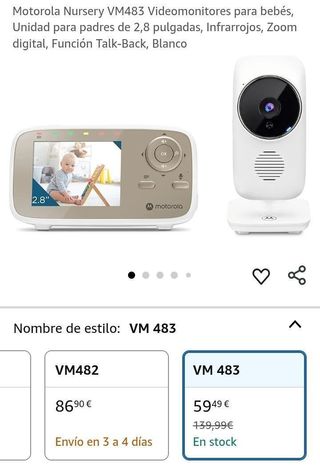 Vigila bebés Motorola MBP481 con pantalla de 2 pulgadas. - Monitor de vídeo digital y a color. - Zoom digital. - Visión nocturna. - Incluye unidad de cámara y unidad de padres. - Guía de inicio rápido. - Micrófono de alta sensibilidad para oir perfectamente al bebé. - Cámara totalmente ajustable al ángulo deseado. - Necesario enchufarlo a enchufe. 🎁 REGALO segundo vigilabebé del mismo modelo que el primero para que sirva de repuesto por no usarse apenas y asi tener cables o cámara de recambio.