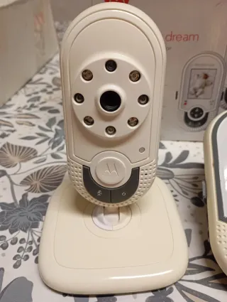 Cámara de vigilancia para bebés Motorola con pantalla a color. - Pantalla a color diagonal de 3.5 - Comunicación bidireccional - Micrófono de alta sensibilidad - Visualización de temperatura ambiente - Visión nocturna infrarroja - Panorámica, inclinación y zoom remotos Nueva costó 182€. Está en buen estado y funciona correctamente.