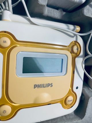 Vigilabebés de la marca Philips en color blanco y detalles dorados. - Pantalla digital. - Monitor infantil más funcional marcado. - Conexión a tu TELEFONO si se despierta tú bebe. Se hacen envios.
