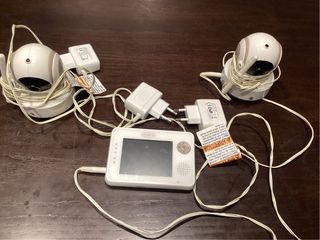 Sistema de vigilancia para bebés Availand con dos cámaras. - Incluye monitor y dos unidades de cámara. - Adaptadores de corriente incluidos. Desperfecto: lengüeta trasera rota