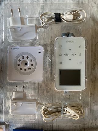 Precio original 150€ Equipo de vigilancia de bebés incluye: - cámara - monitor - cargador de monitor - cable alimentación de cámara - instrucciones y embalaje original Caraceterísricas Pueden conectarse hasta 4 cámaras Posibilidad de visulizar en PC Activación por voz Melodías Alarmas diferentes (pañales, biberon, medicación…) Posibilidad de zoom Posibilidad de visializar 2 camaras a la vez