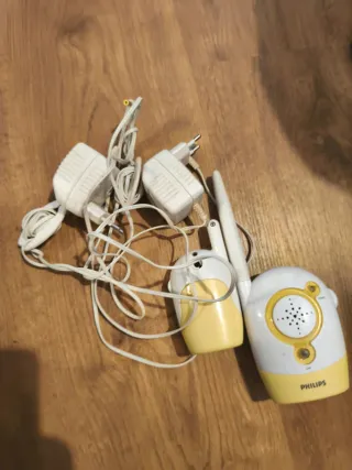 Vigilabebés de la marca Philips, ideal para mantener la tranquilidad mientras tu bebé duerme. - Incluye unidad para padres y unidad para bebé. - Dos adaptadores de corriente. - Diseño blanco y amarillo. Funciona tanto con transformador como con pilas Mucho alcance. Muy sencillos pero muy útiles para grandes distancias