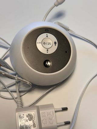 Este es un intercomunicador vigilabebés de la marca Motorola. Superfacil de usar. Enchufar y listo - Diseño compacto y portátil. - Botones de control de volumen y encendido. - Indicador luminoso.