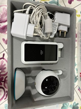 Sistema de vigilancia para bebés Availand Followbaby con cámara adicional. - Dos cámaras incluidas. - Diseño moderno y funcional. El monitor tiene un golpe y le falta la pestaña de detrás. Valor del producto 160+100 euros