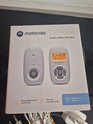 Vigilabebés Motorola AM24, nuevo y sin estrenar. Permite monitorizar la temperatura de la habitación y comunicación bidireccional. - Modelo: AM24 - Marca: Motorola Nursery - Tipo: Vigilabebés de audio - Funciones: Monitorización de temperatura, comunicación bidireccional - Pantalla retroiluminada