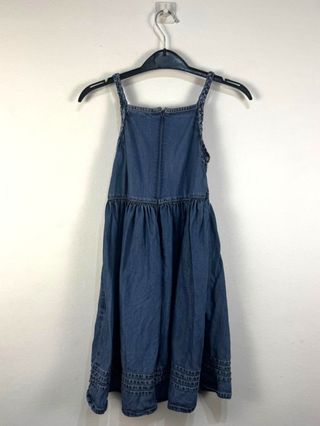 Vestido Denim de tirantes con detalles trenzados. 🏷️ Talla: 8 años (128 cm) 🎨 Color: Azul 📝 Detalles: Tirantes con detalle trenzado. Cierre de media cremallera en la parte superior trasera. ✨ Estado: Muy bueno ✅ Grado: 9/10 ______________________ 📏 Medidas Largo: 68cm Axilas: 28cm