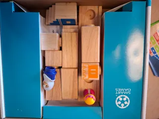 Juego de mesa Build or Boom de Goliath. ¡Construye rápido y explota la dinamita! Es un juego rápido para reírse bastante. Cuesta unos 30 euros nuevo. - Para mayores de 6 años. - De 2 jugadores.