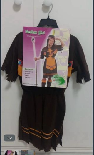 Disfraz de niña con temática india, perfecto para fiestas o eventos. - Nuevo a estrenar - Talla: para niña 7/8 años - Diseño con flecos y detalles tribales.
