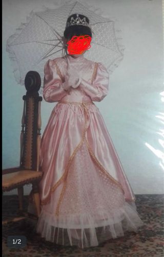 Precioso disfraz de princesa en color rosa, ideal para fiestas o eventos especiales  - Vestido largo satinado -con detalles en el acabado - Mangas abullonadas. - Fajín dorado. - Tutú de tul blanco. -para niña de 8 a 9 años no negociable -más cosas en mi perfil