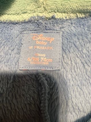 Disfraz de Stitch para bebé, ideal para los más pequeños. Es un mono completo con capucha. - Talla 6/9 meses. - Altura recomendada 74cm. - Material suave y cómodo.