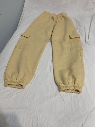 Pantalón de chándal para niña en color amarillo. - Tejido suave y cómodo. - Cintura elástica. - Bolsillos cargo laterales.