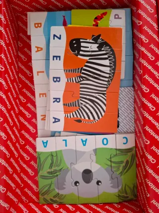 Puzzle de Clementoni para aprender palabras. Incluye piezas con letras e imágenes. - Ideal para niños de 4 a 6 años. - Fomenta el aprendizaje de letras y palabras. - Incluye imágenes de animales y piratas.