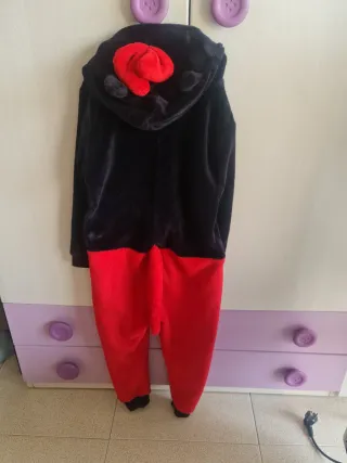 Pijama enterizo con diseño de Mickey Mouse. Talla 6 - Color negro y rojo. - Cierre de cremallera frontal. - Puños y tobillos negros. - Guantes blancos aplicados en la parte delantera.