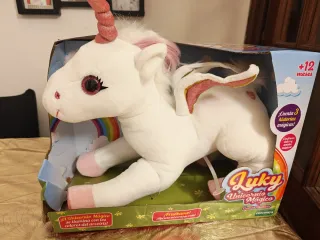 Un tierno peluche de unicornio llamado Luky que cuenta historias mágicas y se ilumina con los colores del arcoíris. - Incluye 3 historias mágicas. - Se ilumina con los colores del arcoíris. - Edad recomendada: +12 meses.