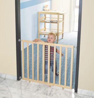 Barrera de seguridad extensible para bebés, fabricada en madera. - Diseño de listones verticales. - Mecanismo de extensión. - Acabado en madera natural. roba Barrera de Seguridad Infantil Extensible, Madera Natural, Sin Taladrar, Para Puertas y Escaleras, Ancho Ajustable de 62, 106 cm BARRERA MULTIFUNCIONAL: la barrera de seguridad para bebés se puede utilizar en escaleras o puertas, lo que la hace adecuado para niños y mascotas - SIN PUERTA QUE ABRIR EXTENSIBLE Y SIN PERFORAR: la barrera de seguridad para escaleras o puertas es adecuada para aberturas con una anchura entre 62 y 106 cm, simplemente ajústela según sus necesidades; n