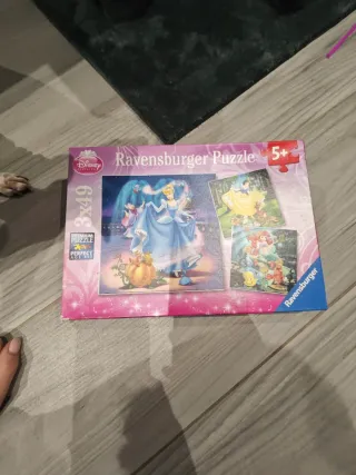 En el puzzle de la sirenita falta una pieza Puzzle de Ravensburger con personajes de las Princesas Disney. Incluye tres imágenes diferentes. - 3 puzzles de 49 piezas cada uno. - Personajes: Cenicienta, Blancanieves y La Sirenita. - Edad recomendada: 5+ años.