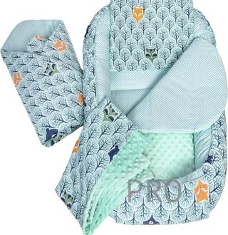 Medi Partners Nido Bebe Recien Nacido Reductor de Cuna - 100x60x15 Juego de 5 Piezas bebés anticolicos Bilateral Portátil o de Viaje 100% Algodón (Bosque con minzer Minky)