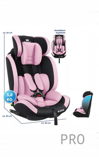 KIDIZ® Silla de Coche bebé | Asiento infantil para coche, asiento para niños, 9 kg - 36 kg, 1-12 años, grupo 1/2/3, universal, homologado según ECE R129/03, Rosa