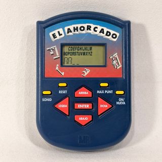 Juego electrónico portátil El Ahorcado de MB Hasbro, lanzado en 1998. Ideal para llevar a todas partes. Las fotos forman parte de la descripción - Diseño compacto y portátil. - Botones de control para el juego.
