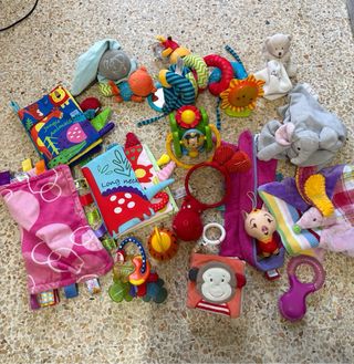 Caja Lovevery con tarjetas de vocabulario y texturas. - Tarjetas con imágenes de camión, perro, coche y bebé entre otras. Tienen dos palabras por tarjeta - Incluye tarjetas con texturas para estimular el tacto. - Ideal para el aprendizaje temprano. - También libro con partes del cuerpo - Puzzle con imagen Todo perfecto estado excepto la tarjeta de camión que se ve en la imagen