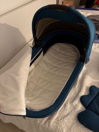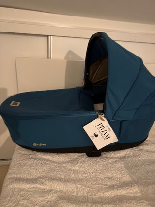 Capazo Cybex Priam en color azul. - Diseño elegante y funcional. - Capota extensible. - Asa de transporte integrada.