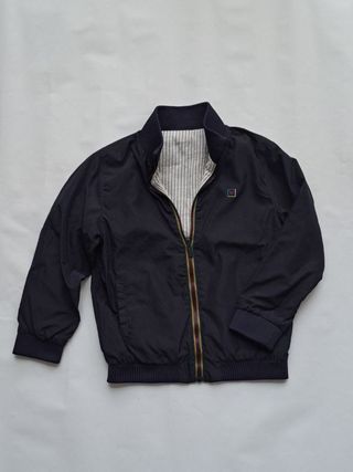 Cazadora infantil reversible de la marca Mayoral. Cazadora niño Mayoral reversble. - Azul marino y blanca con listas azules. - Talla 6. - Diseño reversible. - Bolsillos en ambos lados.