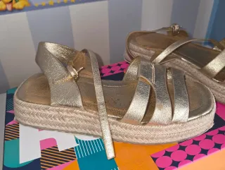 Sandalias doradas cuña esparto niña