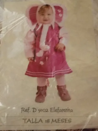 Disfraz de elefantita para bebé, talla 18 meses. Perfecto para fiestas o para disfrazarse. - Diseño de elefante en color rosa. - Incluye capucha con orejas. - Detalle de corazones en el vestido.