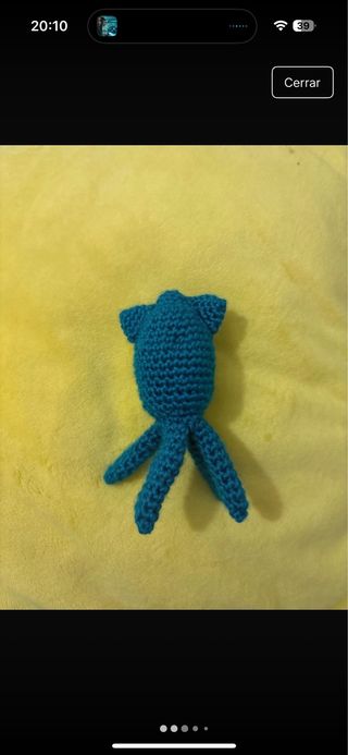 Amigurumi de pulpo tejido, inspirado en Coraline. Es un detalle tierno y artesanal. - Color azul. - Detalle de botón rosa en el frente. - Hecho a mano con hilo.